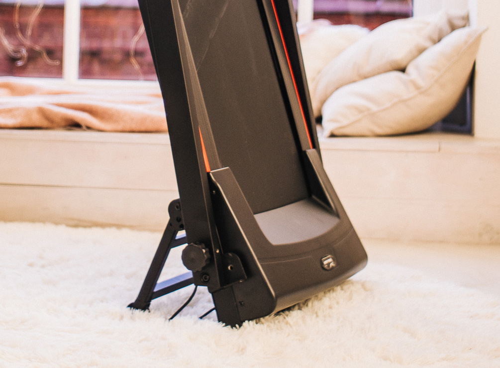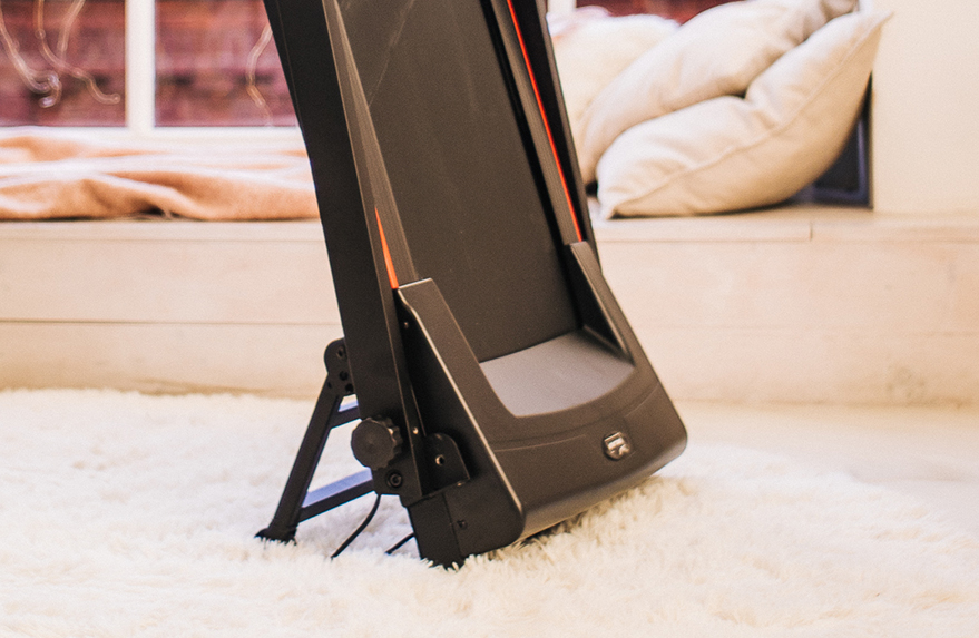 В сложенном состоянии толщина дорожки составляет всего 34 см, что делает хранение максимально удобным. Современная система складывания обеспечивает легкую трансформацию тренажера и его безопасное хранение в любом положении.