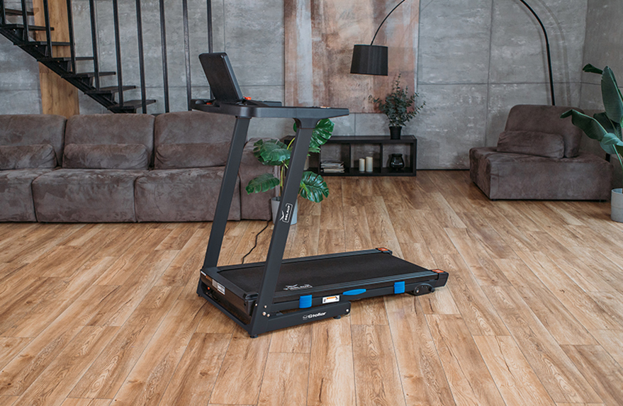 Моторный отсек тренажера расположен не как обычно — перед беговым полотном, а под ним. За счет этого удалось значительно сократить длину дорожки, при этом размер бегового полотна не уменьшился. При беге пользователю не придется смотреть под ноги, а также больше нет риска задеть ногой моторный отсек!