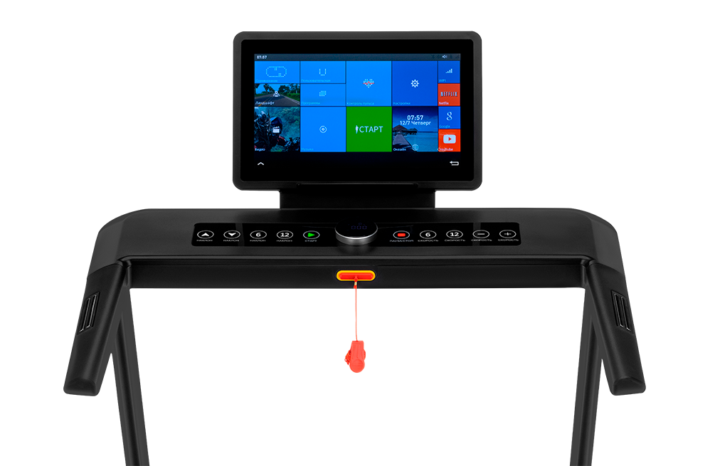 У Orlauf Ultima TFT сенсорная консоль, на которую вынесены кнопки настройки программ, изменения угла наклона и скорости, а также удобные быстрые кнопки изменения скорости и угла наклона.