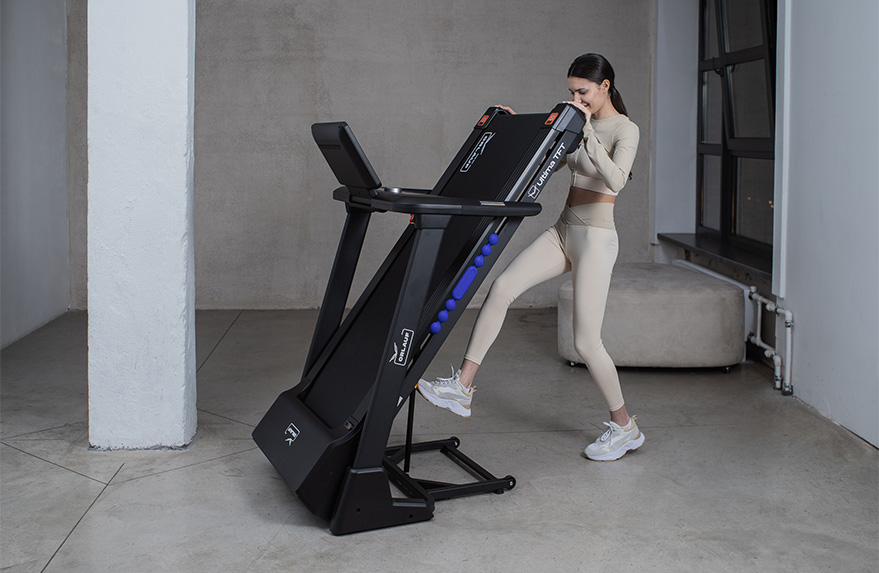 Угол наклона дорожки меняется электронно до 15%. Функция позволяет дополнительно нагрузить мышцы во время тренировки.