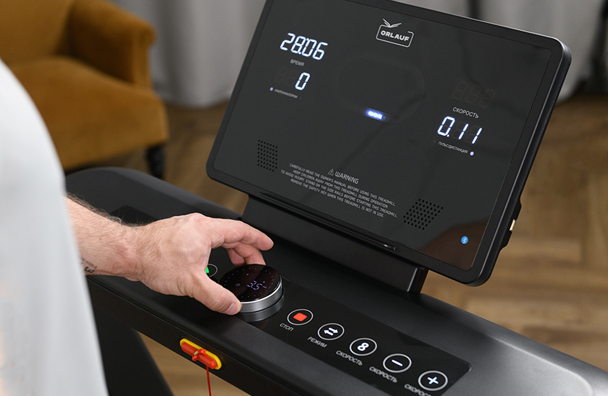 Консоль с LED-дисплеем оснащена русифицированными кнопками управления. По центру консоли расположена многофункциональная кнопка с дисплеем, с помощью которой можно включать, приостанавливать и завершать тренировки.