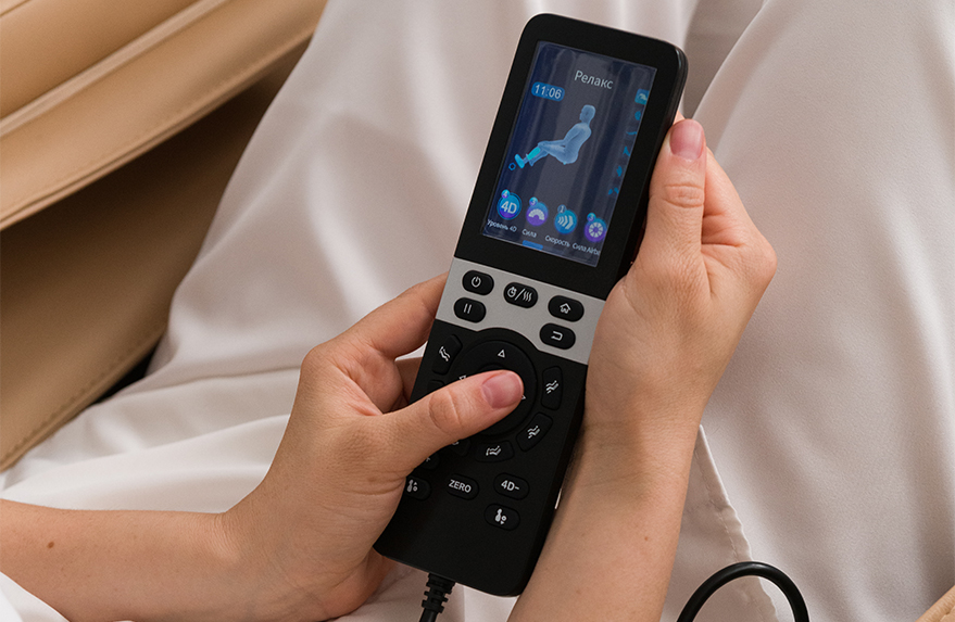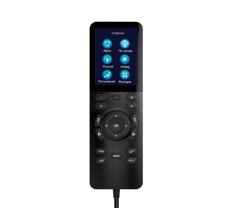 Управляйте массажным креслом с легкостью благодаря интуитивно понятному русифицированному пульту. Выбирайте из 16 автоматических программ, включая 12 общих и 4 зональных, или создайте свой идеальный массаж, настроив один из 6 ручных режимов: «Разминание», «Точечный», «Шиацу», «Проминание», «Шведский», «Постукивание» и «Растяжка».