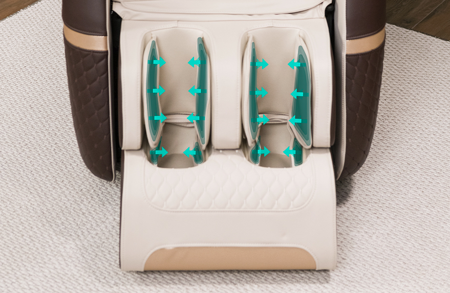 Система роликов и массажных подушек в секции для ног обеспечивает глубокий массаж стоп и создает дополнительный комфорт во время сеанса.