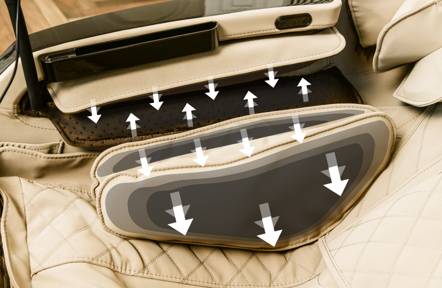 Усовершенствованный 4D-механизм дополнительно выдвигает каретку на 10 см и обеспечивает глубокое воздействие. Возможность изменения интенсивности массажа позволяет настроить воздействие от мягкого расслабляющего до глубоко терапевтического. Такая регулировка делает эту модель идеальной для всех членов семьи.