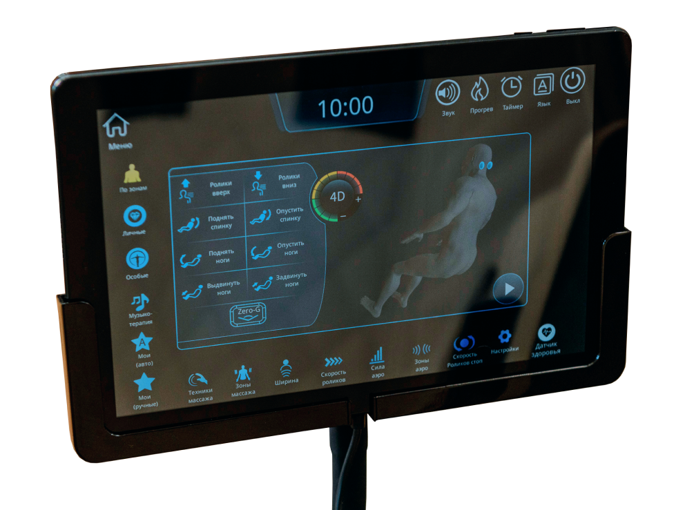 Продуманный интерфейс планшета делает использование максимально простым и понятным, позволяя выбирать нужный режим массажа и с точностью регулировать настройки под индивидуальные предпочтения.