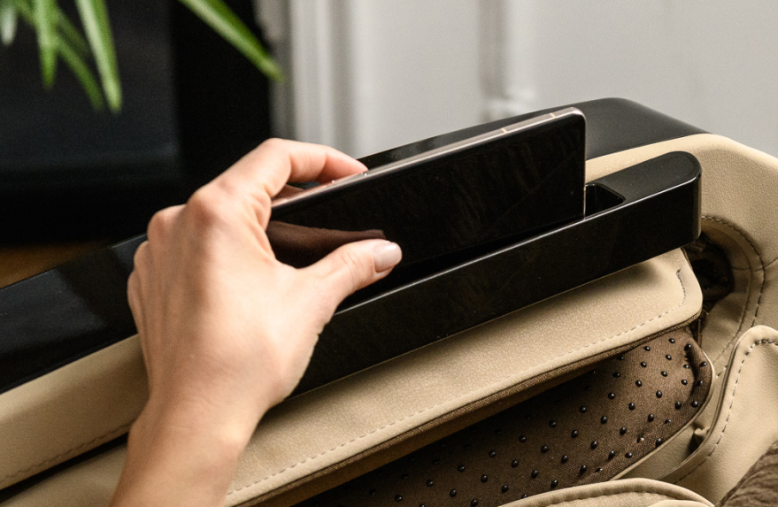 Дополнительный комфорт обеспечивают 2 USB-разъема для зарядки гаджетов и удобное место для хранения смартфона под рукой. Встроенные Bluetooth-колонки высокого качества создают расслабляющую атмосферу, позволяя наслаждаться любимой музыкой или звуками природы во время массажа.